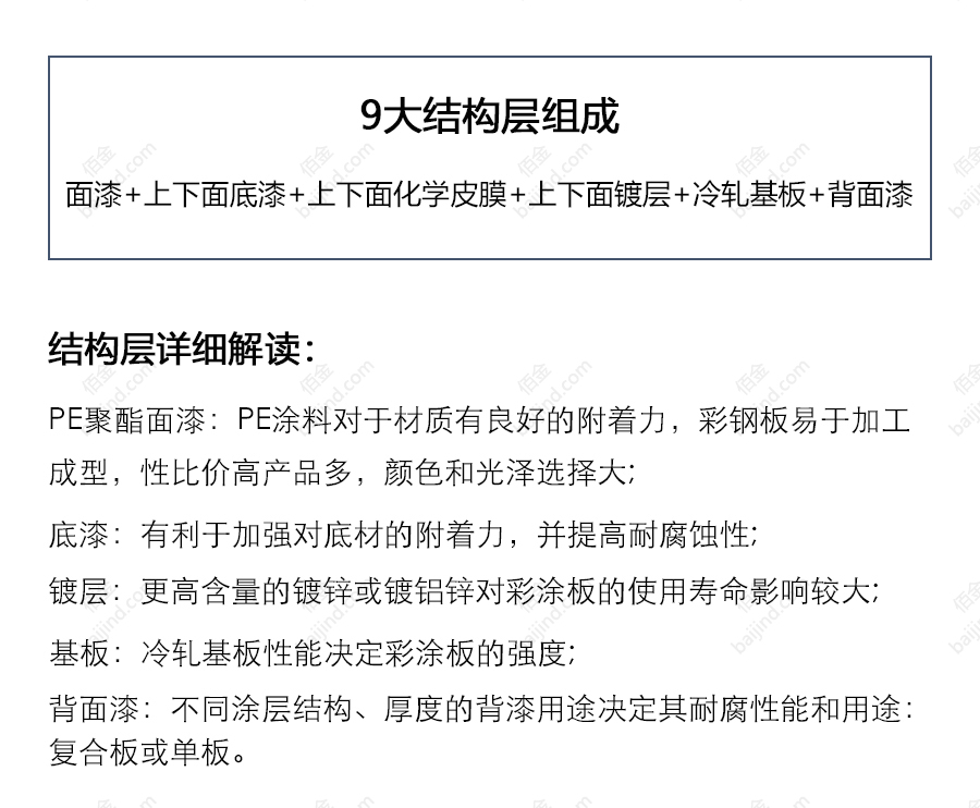 PE聚酯彩涂板附著力良好,在成型性和室外耐久性方面范圍較寬, 耐化學(xué)藥品性中等。廣泛應(yīng)用于普通工業(yè)廠房及倉儲物流庫房的圍護系統(tǒng)中。