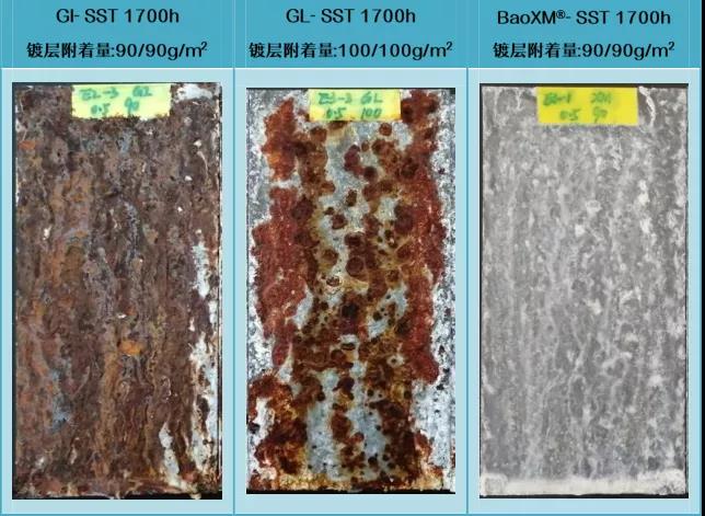 BaoXM®鍍層耐蝕性受切口影響最小,切口耐蝕性較GI、GL更為優異。