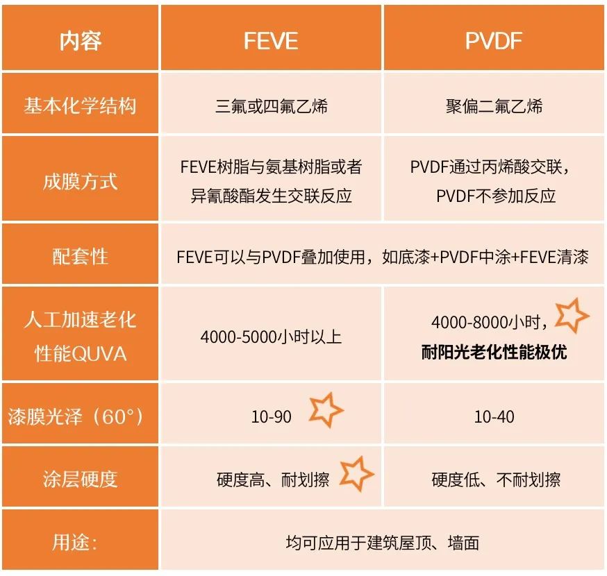FEVE是聚氟烯烴-烷基乙烯基醚共聚或者氟烯烴-烷基乙烯基酯共聚樹脂的英文縮寫,該樹脂制成的涂料具有高光澤、高透明度的特點,兼具優秀的耐候性。可在常溫下交聯固化,也可以適應高溫固化。