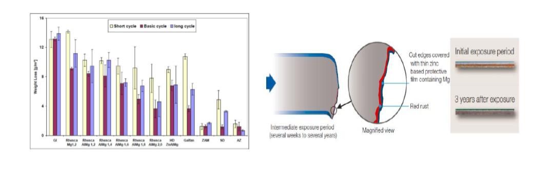 加Mg之后的另一大優點是鋼板的切邊耐蝕性提高,含Mg的Zn基腐蝕產物會覆蓋在切口表面,從而對切口形成保護。