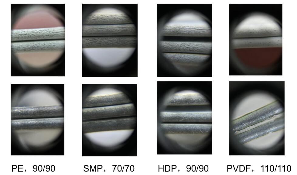 2.與現有鍍鋁鋅基板建筑彩涂相比,涂層裂紋基本一致,但是鍍鋁鋅鍍層裂紋比BZM鍍層明顯。