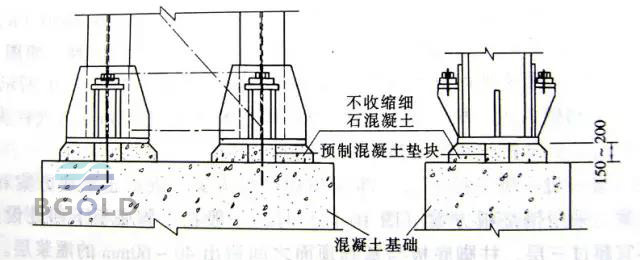 c.  采用座漿墊板時,應采用無收縮砂漿。柱子吊裝前砂漿試塊強度應高于基礎混凝土強度一個等級。