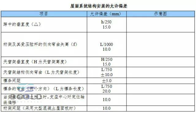屋面系統結構安裝的允許偏差應符合下表規定。