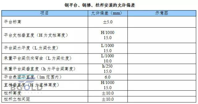 (4) 平臺、梯子和欄桿安裝的允許偏差應符合下表規定。