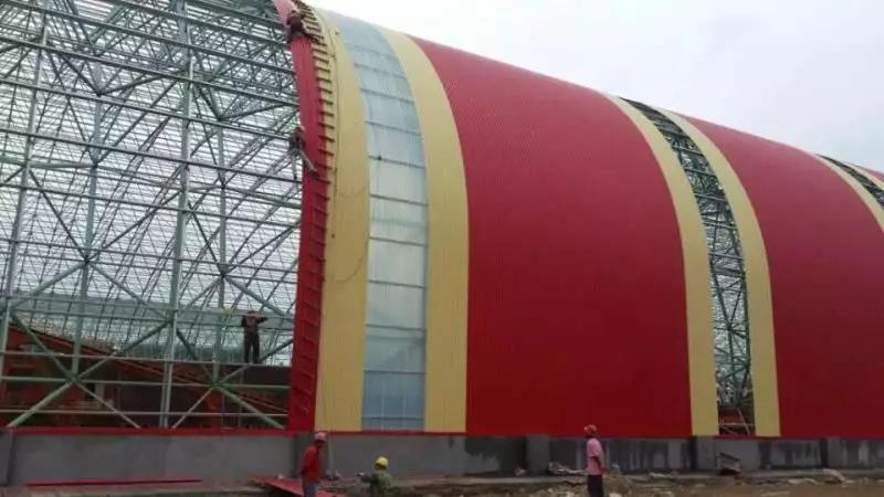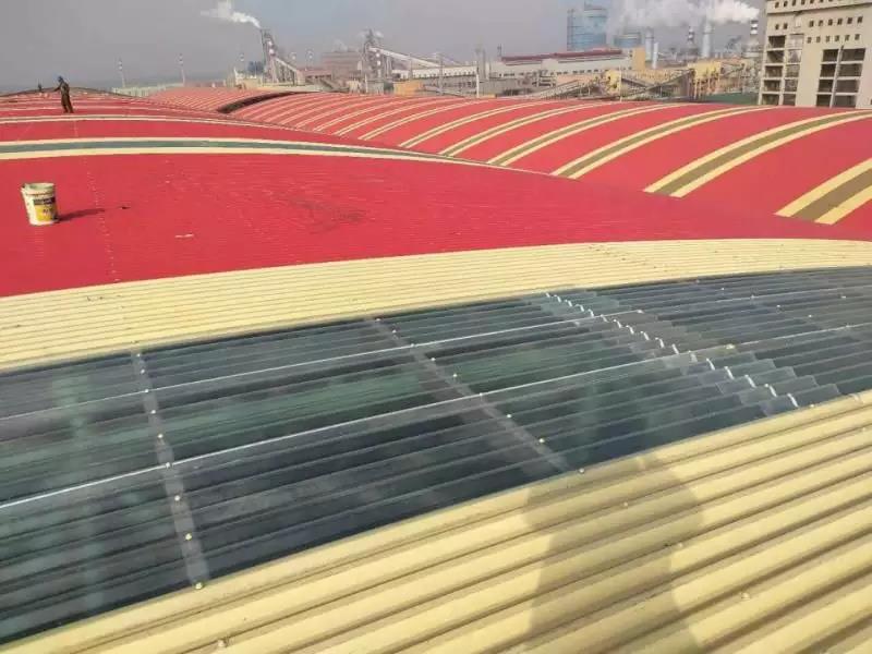 前期使用其他廠家彩涂產(chǎn)品,短時(shí)間內(nèi)多次發(fā)生銹蝕穿孔。后經(jīng)與寶鋼黃石公司聯(lián)系并邀請(qǐng)進(jìn)行現(xiàn)場(chǎng)走訪,發(fā)現(xiàn)此批彩涂產(chǎn)品使用在煤氣發(fā)生爐區(qū)域,車(chē)間內(nèi)不僅屬高溫、高濕環(huán)境,還有二氧化硫等還原氣氛,鍋爐排放粉塵顆粒附著腐蝕較大,對(duì)產(chǎn)品耐蝕性提出更高的要求。經(jīng)與業(yè)主溝通,選用鍍鋁鋅基板,并提升背面膜厚及涂料種類(lèi)(環(huán)氧改為氟碳涂層,背面漆膜≥20um),經(jīng)5年時(shí)間跟蹤,漆膜完整,大大增強(qiáng)了使用壽命,降低更換周期,得到業(yè)主認(rèn)可。使用時(shí)間2013年,共計(jì)使用400噸。