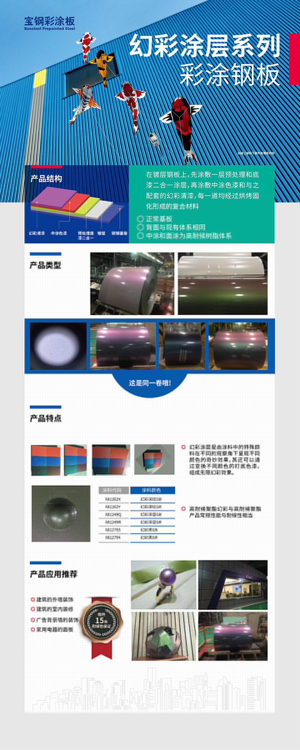 注:本網(wǎng)站數(shù)據(jù)部分來(lái)源寶鋼彩涂板企業(yè)標(biāo)準(zhǔn)BQB/440 -2014 ,寶鋼彩涂板產(chǎn)品手冊(cè),及工程案例。